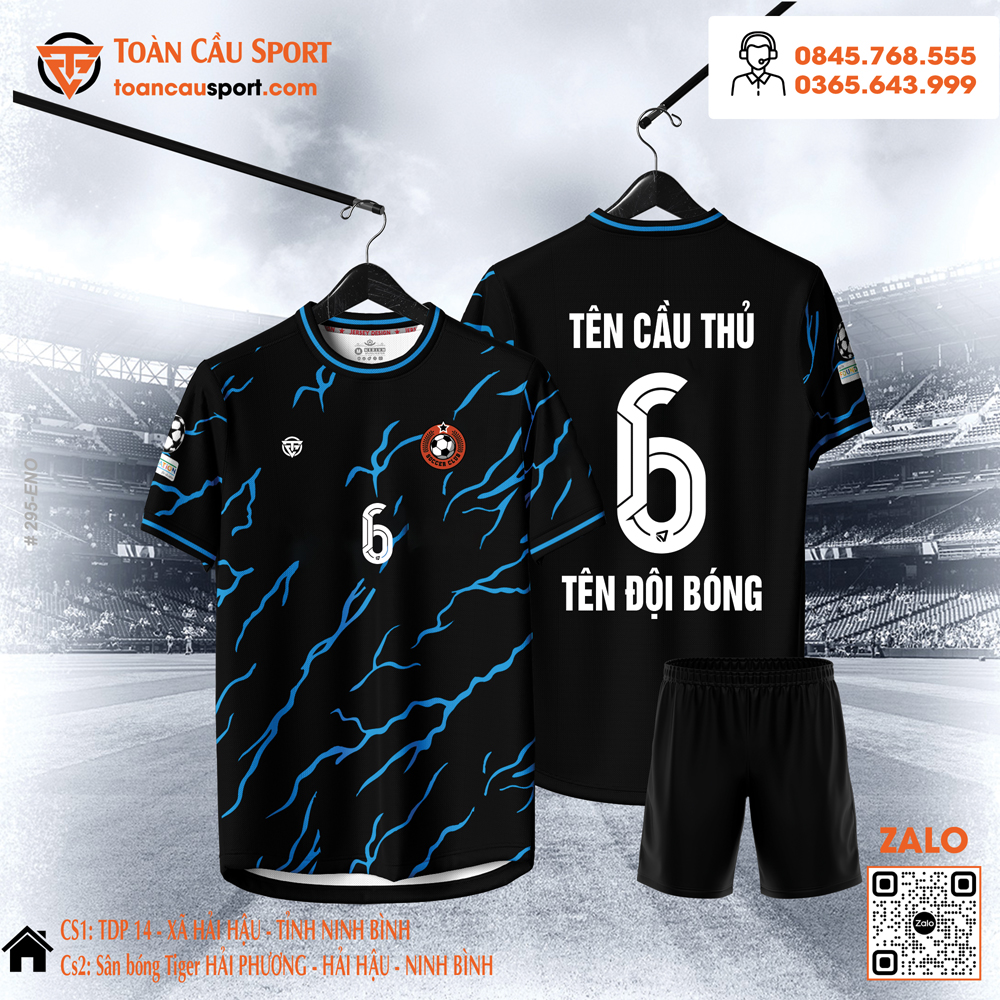 Nổi bật với sắc đen huyền bí phối họa tiết sét xanh dương năng động, áo bóng đá Toàn Cầu Sport là biểu tượng của tinh thần tốc độ, sức mạnh và phong cách thi đấu đầy cuốn hút.