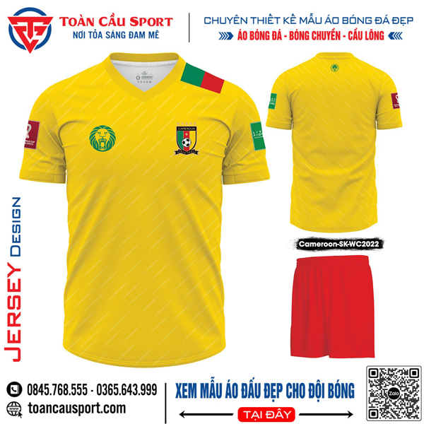 Mẫu Áo Đá Bóng Đội Tuyển Cameroon Sân Khách World Cup 2022 Màu Vàng Mới