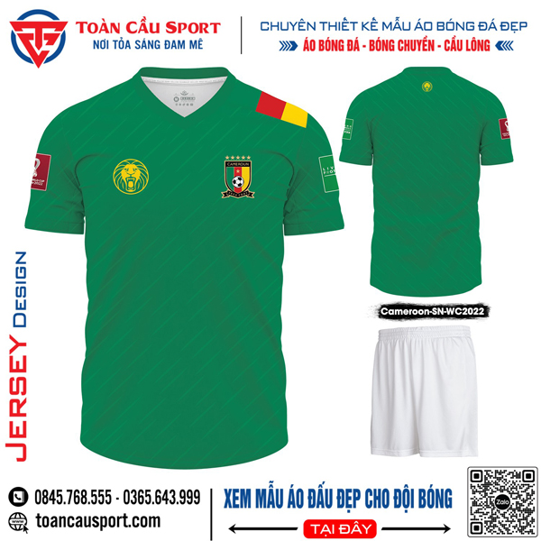 Mẫu Áo Đá Bóng Đội Tuyển Cameroon Sân Nhà World Cup 2022 Xanh Két Đẹp