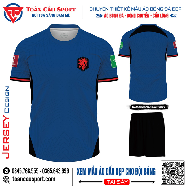 Mẫu Áo Đá Bóng Đội Tuyển Hà Lan Sân Khách World Cup 2022 Màu Xanh Bích Đẹp