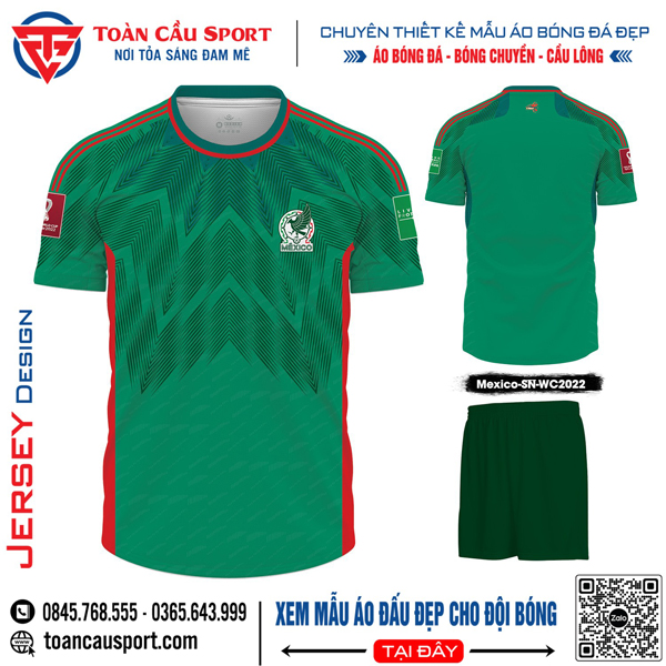 Mẫu Áo Đá Bóng Đội Tuyển Mexico Sân Nhà World Cup 2022 Màu Xanh Két Mới